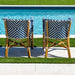 Bring a touch of coastal charm to your indoor or covered outdoor spaces with the Panama Jack Tia Bistro Armchairs. This set of two armchairs is crafted from natural rattan frames and a striking blue and white synthetic weave, creating a perfect blend of durability and style. With their lightweight yet sturdy construction, these chairs are easy to move and ideal for casual dining or lounging in any covered environment. Fully assembled for your convenience, these chairs exude timeless elegance while providing comfortable support for everyday use.