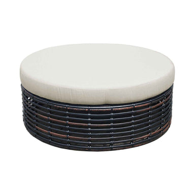 The Brafta Ottoman offers versatile comfort as a footrest or extra seating. It features a white aluminum frame, Ecolene Seashell flat fiber weaving...